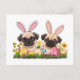 Påsk Pug Hundar Bunny Öron Helg Vykort