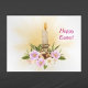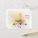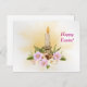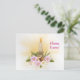 Påsk Christian Helgdag Card. Rosa blommor med ljus och hett kor.