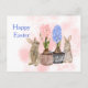 Påsk Rosa Blue Rabbits Blommigt Basket Helg Vykort
