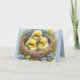 Cute baby chickar i ett bo. Perfekt kort för familj eller vänner i Påsk eller för att fira Vår! Helt anpassade att lägga till din känsla eller ditt ordspråk.