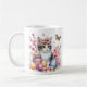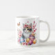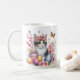 Mugg med en kattunge med körsbärsblommar och Påskägg. Anpassade.