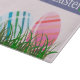 Färgrika stripe-ägg är sitta i grönt gräs på en lavendel bakgrund med en "Vår"-banderoll. Klicka på "Anpassa" om du vill lägga till personlig eller ändra färg i bakgrunden, om du vill.