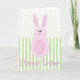 Det här kortet har en söt liten bunny som också är en del av Påskägget! En roligt som är utformad på en grönt-prickpunkt och strimlad bakgrund. Nedanstående text lyder "Glad påsk". Ta en titt på avsnittet Helgdagar och händelser på vårt galleri om du vill ha mer "Påskägg Bunny"-produkter, inklusive matchande klistermärken, porto och andra presenter.