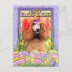 Denna Röda Pudel-Hund omges av Påskäggets dekorerade kakor och tittar fram emot att hjälpa er att skicka Påsk Hälsning och välkomna i Vår. Den här designen finns i över 70+ Hundraser. Om du inte ser din favorit Hund aveln ELLER om du vill ha din EGEN HUND i den här designen kontaktar du mig. Det finns också en version av den här designen som du kan överföra ditt eget foto till.