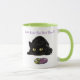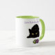 Cute black cat nära att slå i vissa ukrainska Påskägg i en gult