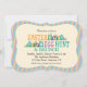 Den här parentesformade inbjudningsfunktionen och grafiken över de färgstarka Påskäggen gömt i blad av grönt gräs med texten: Påskägg Hunt & Brunch. Bakgrunden är ett trendig rand mönster som använder orange, teal och lila. Med anpassade kan du lägga till information.