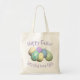 En påse gjord för Påskägg-jakt. Texten säger "Glad påsk" "Låt oss hitta vissa ägg" med dekorerade ägg som har hittats. Lycklig-jakt.