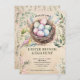 Färgfulla Påskägg visas i ett fågelbo bland grönt löv för att välkomna helgdag under våren. En liten rosa- och gult fågel sitter vid ett löv i närheten och undrar hur äggen har i boet. Bakgrunden är en texturerad kräm med vattenfärg medan grenar omger redet. Perfekt för Påsk brunch eller luncheon, eller en familj och vänner som jagar Påskägg. Tillgängligt med matchande produkter.
