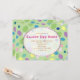 Inbjudan din familj och dina vänner till Påskägget Hunt Party med dessa söta inbjudningar till Påsk-partiet med färgstark bakgrund av Påskäggen med party-detaljer skrivna inuti ett äggformat ram. Du har möjlighet att flytta designen inslag och ändra ordalydelsen/teckensnittet/färg så att det passar även för stil.