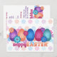 Glad påsk! Det är Påskhare och elak det är dags att jaga Påskägg! Fira säsongen i lekfullt stil med en inbjudan till Påskägg och Vår blommor. Fem flerfärgade pastellägg i söt skalade turkoser, lila, blått, orange och fuchsia sitter i rad på en vit bakgrund som är klädd med söt vår blommor. En roligt och blomma"Glad påsk" hälsning ligger i grund. På baksidan finns en annan scentext och anpassade i vår. Det här är ett lycklig, contemporaryn tar på sig en traditionell helgdag. Glöm inte matchande brevlådor och kuvertdekaler!