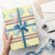 Den färgrika påskägget på denna gåvasjal har kläckt en överrrakning! En luddig gul bebischick dyker upp från den nedersta halvan av äggstunderna det bästa halva liggra närliggande. Ägget är blekt - blått med vertikala randar av ljus gult som växlar med parallell, ror av lilla rosa pilbågar. Detta slående in papper skulle är också mycket sött för bebis- och baby showergåvor. Från mitt original digitalt skapade blandade avbildar massmedia.