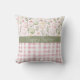 Vår dekorativ kudde med ett Påsk-temat mönster. Kuddens övre del visningar en mönster av dekorerade Påskägg, ömtåliga blommor och blad-färgad på en ljusbakgrund. Avsnittet mitten innehåller ett muterat band med grönten "Glad påsk" skrivet med elegantens vita teckensnitt. Texten kan anpassas efter dina önskemål. I grund-avsnittet visas en rosa och vit gingham plaid mönster, med en mysigt charm mellan land och stil. Kombinationen av mjuka pastelltoner och motiv skapar en varm och glad estetisk perfekt för décor i Påsk. Mönster och text upprepad vid omvänd text.