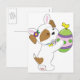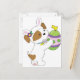 En söt marionett som är klädd i Påskhare kostym håller ett målat ägg med chick sitta överst.