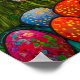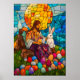 Glaskonst av Jesus Kristus med söt påskhare och pulserande påskägg. Utplåna kanindjur för att återuppväcka den kristna religionen. Glad påsk med Påskägget jakt.