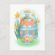 Ovanpå ett pastellfärgat Påskägg sitter en liten yttre bord-inställning två bland gultens skyddsdil. Ursprunglig illustration av Noël Snö.