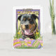 Denna Rottweiler hund omges av påskägget dekorerade kakor och tittar framåtriktat till portionen som du överför påskhälsningar och till välkomnandet i vår. Denna design är tillgänglig in över 70+ Hund aveln. Om du inte ser din favorit- hund aveln, ELLER om du skulle något liknande DIN EGNA HUND i denna design, kontakta precis mig. Det finns också en version av denna design att du kan upload ditt egna foto in i.