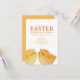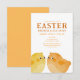 Påskbrunch och inbjudan till äggsökning med två små söta babykycklingar i orange och gult. Anpassningsbar produkt för en minnesvärd firande. Perfekt för en påskfest, påskäggsökning, påskpicknick eller påskbrunch.