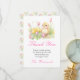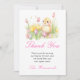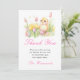 Vacker påskbrunch tackkort med en söt kyckling och rosa och gula tulpaner. Orden kan ändras för att passa dina egna detaljer eller krav