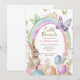 Hoppa in i höstens semesteranda med vår charmiga Påskbrunch & Påskäggsjakt inbjudan för en flicka! Med söta pastellfärgade design av kanin kaniner, färgglada påskägg och blommande vårblommor, fångar denna inbjudan perfekt glädjen av säsongen. Den lekfulla blandningen av rosa, gula och mintgröna färger tillför en glad ton, som sätter scenen för en rolig firande. Anpassa inbjudan med din lilla flickas namn, evenemangsinformation och RSVP-information för en speciell touch. Perfekt för att välkomna vänner och familj till en förtjusande påskbrunch följt av en fantastisk äggsökning, lovar denna inbjudan en dag av skratt, glädje och vårminnen!