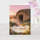En vältrampad stig leder till en stentomb som är tom på påskmorgonen, när solen går upp över kullarna. Texten "Han är uppstånden" på framsidan påminner oss om Hans uppståndelse och vår frälsning. Vacker kristen symbolism.