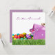 Påskfrunchinbjudan med azaphot med purpurfärgade tulpan i en vas gör denna perfekt för vårnågot liknandeinbjudan för ditt påskfirande. Dessa gulliga inbjudningar kan skräddarsy för påskäggjakter, påskfrukostar, kommer Etc.-inbjudningar med kuvert och ditt primat av papper. Bekläda och tillbaka inbjudan.