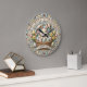 Fira årstiden för nya begynnelser med klockan Easter Blessings Spring Joy. Denna charmiga klocka har en livfull, högupplöst grafik som utstrålar festlig glädje. Konsten centreras kring en storögt, bedårande kanin som tittar ut från en flätad korg som svämmar över av vackert dekorerade påskägg i pastellfärger, boende bland vårens tulpaner och narcissus. Scenen är placerad mot en rustik bakgrund av ljusa träplankor och inramad av en fantasifull band- och blomsterbård. Med texten "EASTER BLESSINGS" högst upp och "SPRING JOY" på ett elegant band vid basen, tillför denna klocka en hjärtlig touch till alla rum. Medan designen på ett mästerligt sätt härmar de tredimension