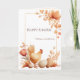 En varm och charmig påskhälsningskort med en delikat blomsterkant och en söt illustration av en kyckling.