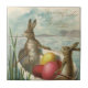 Påskharar i en båt med påskägg kakelplatta