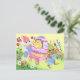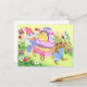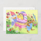 Två förtjusande påskharar paradermarerar nerför en färgrik vårstig med blommande blommor, åtföljda av ett målat påskägg och en luddig gul kyckling.