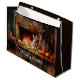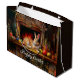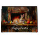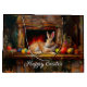 Påskhare framför kaminen med färgstarka Påskägg Glad påsk hälsning