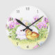 En gullig plats av lite en vitpåskhare och duckling snuggled upp till varje annan sitta amidst nätt vår blommor.