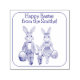 En charmig och vismisk frimärke i Påsk med en varm, personlig beröring. Bilden är handgjord (vattenfärg av Fantabuloustef) perfekt för att skicka varmt önskemål. En elegant-familj jagar ägg. Kanin från far: På den lämnat sidan klämde en större kanin i ett brunt jacka och en vit skjorta med rött snöre. Han håller en vävd basket fylld med färgstarka Påskägg. Kanin mor: På högerna, en något mindre kanin med en ljusblå klänning med ett mörkare blått snedstreck runt midjan och en liten röd bukslips. Hon bär också en basket av Påskäggen. Hon har en känslig blommigt krona på huvudet. En mindre kanin i mitten, klädd i en grönt kostym jacka och vit skjorta håller handen på far och går glatt. . Frimärke väcker, vår, förnyelse och lycklig-familjens värme till Påskägg! Anpassa det till att önska Glad påsk till dina kära.