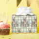 Påskhare för utspädd vattenfärg med dekorerade ägg på grönt och vit gingham.