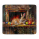 Påskhare framför kaminen med färgstarka Påskägg