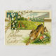 Vår skickar en Påsk hälsning till någon! Den här vintagen skriver ut Påskhare, färgad Påskägg, kyrka och bomull.