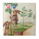 Vår skickar en Påsk hälsning till någon! Den här vintagen skriver ut Påskhare som plockar Påskägg för färgad från träd.