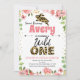 [All text är redigerbar utom "Vild ONE"] Tema: Påskhare Stil: Cute, Elegant. Färg: Rosa, vit. Grafik: Leopard bunny silhouette, rosa vattenfärgblommor.