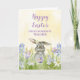 Ett hälsningskort för glad påsk-läraren med en söt illustration av en Påskhare i en vår-ängsskugga med blommor med vattenfärg.
