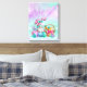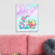 Påskhare Gnome med rosa bunny öron sitta i vår blommor med dekorerade ägg och ett torkat basket med morötter som sätts på vattenfärgstävel och lila med pastellkandisdroppar.