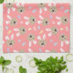En söt illustration av en gyllene hämtare hund med öron och en söt Påsk bandana. Omgiven av dekorerade Påskägg, vår blommor och fjärilar.