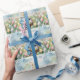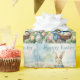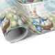 Vattenfärgad Påskhare som håller en basket av Påskäggen i en skugga av färgstarka tulpaner i Glad påsk hälsning