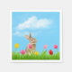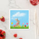 Vår tulpaner i gräs med söt brun Påskhare och blå himmel bakgrund