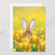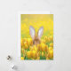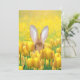 Lisma den kulöra Flemish jätte- kaninen som kikar ut från gul tulpanendera nederlagpåskägg eller söker efter dem