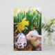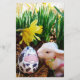 Påskhare kyssar Cow Egg Photo av Sandy Closs Påskhare/Rabbit och Black and white ko-Påskägg med gult daffodil.