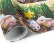 Påskhare kyssar Cow Egg Photo av Sandy Closs Påskhare/Rabbit och Black and white ko-Påskägg med gult daffodil.