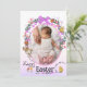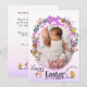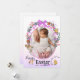 Din baby bild passar lätt in på det här snyggt utformade fotokortet med en knipa, chickar och söt blommigt runt en äggformad mall för ditt foto. Baksidan har en hälsning med fler kåpa och kycklingillustrationer. Detta är ett unikt kort, och alla artiklar har målats för hand. Glad påsk!