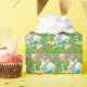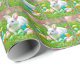En söt vit Påskhare med färgad ägg i grönt gräs