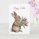 Tvätta vattenfärgsbunny med vår-tulpaner på vit bakgrund. Text kan redigeras.