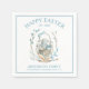Cute Colorful Påskhare med vår blommor och ägg basket. Anpassadets text. Blå övertonsvariation.