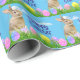Påskhare och regnbåge molnar på ljusblå bakgrund med Påskägg av prickprickar i gräset. Bakgrunden till färg kan ändras.